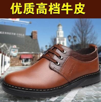 > 新款男鞋都市时尚潮流英伦经典商务休闲低帮系带圆头耐磨正品皮鞋